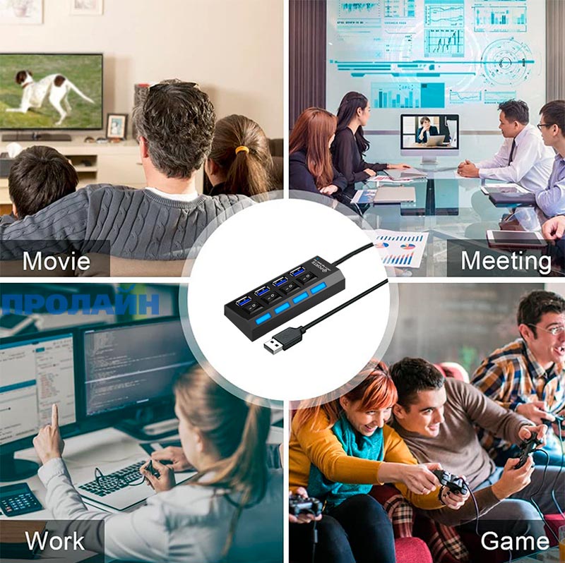 USB разветвитель позволяет подключать к ПК различные периферийные устройства стандартов USB 2.0 и USB 1.1. Разветвитель имеет 7 портов USB с тумблером включения и световой индикацией на каждом порту. Легкий, компактный разветвитель безусловно станет удобным аксессуаром для вашего ПК. Поддержка передачи данных: полная скорость 500 Мб/с, средняя скорость 12 Мб/с, низкая скорость 1,5 Мб/с. Подходит для использования U-диска, цифровой камеры, цифровой видеокамеры, аудиосистемы, монитора, устройства ввода и т. п.
