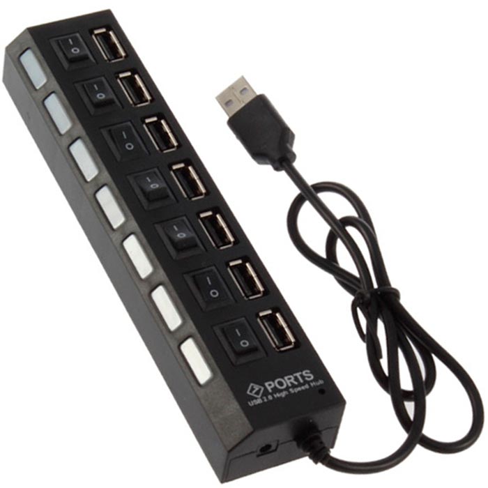 USB разветвитель позволяет подключать к ПК различные периферийные устройства стандартов USB 2.0 и USB 1.1. Разветвитель имеет 7 портов USB с тумблером включения и световой индикацией на каждом порту. Легкий, компактный разветвитель безусловно станет удобным аксессуаром для вашего ПК. Поддержка передачи данных: полная скорость 500 Мб/с, средняя скорость 12 Мб/с, низкая скорость 1,5 Мб/с. Подходит для использования U-диска, цифровой камеры, цифровой видеокамеры, аудиосистемы, монитора, устройства ввода и т. п.