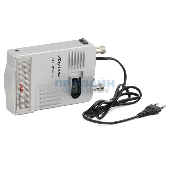 Репитер AnyTone AT-600Turbo представляет собой приемопередатчик GSM 900, который принимает сигнал от базовой станции оператора через кабель и выносную антенну, усиливает его, и передает через комнатную антенну непосредственно мобильному телефону. Сигнал усиливается и в обратном направлении - от мобильного телефона к базе оператора GSM. Усиление AnyTone AT-600Turbo равно 50 dB в восходящем канале Up Link и 60 dB в нисходящем канале Down Link. AnyTone AT-600Turbo обеспечивает надежную связь на площади до 300 м2.