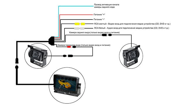 Данный монитор предназначен для подключения к нему автомобильных видеокамер. Монитор имеет кронштейн, благодаря которому его можно установить практически в любом месте салона автомобиля.