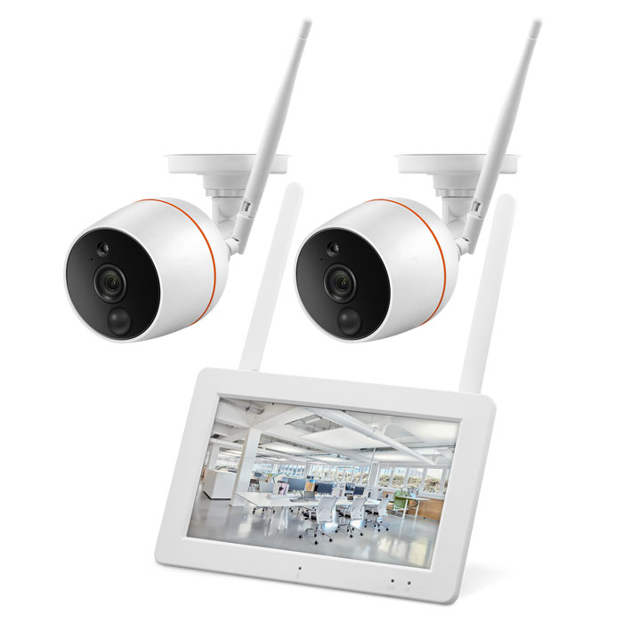 Сенсорный экран сетевого регистратора позволяет интуитивно настроить все параметры видеонаблюдения. Меню содержит только необходимые установки. Все компоненты комплекта уже связаны между собой. Видео записывается на MicroSD/TF карту объёмом до 128 Гб, время для записи вы можете установить сами через настройки системы, а также вести наблюдение с помощью смартфона. Видеокамеры ведут съемку в разрешении до 1920x1080 пикс, обеспечивая высокое качество изображения, они оборудованы датчиком движения PIR, а в условиях слабой освещённости могут снимать на расстоянии до 9 метров. Вход USB 2.0 служит для обновления ПО, а встроенный микрофон и динамики дают возможность пользоваться функцией интеркома.