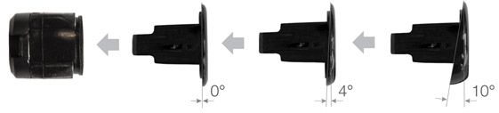 Системы с датчиками A комплектуются проставочными кольцами, которые компенсируют угол наклона бампера (углы наклона 0°, 4°, 10°).