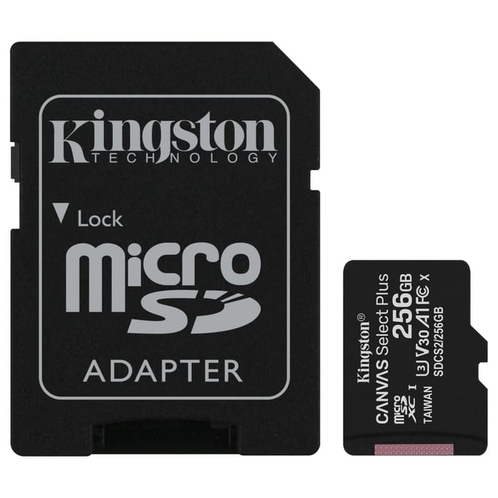 Карта памяти 256 GB microSD XC-I C10 Kingston CANVAS Select Plus с адаптером имеет класс скорости 10 и интерфейс UHS-I (100 Мбит/с для чтения, от 100 Мбит/с для записи), что делает ее идеальным решением для фотографов, делающих снимки разного типа - от неподвижных изображений до детей или животных в движении. Она также идеально подходит для экшн-камер или камер с разрешением Ultra HD.