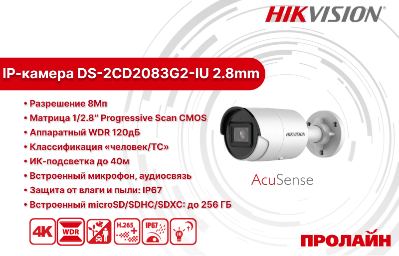 Уличная IP-камера HIKVISION DS-2CD2083G2-IU 2.8mm