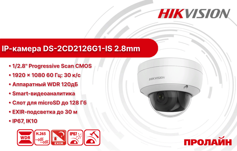 IP-камера HIKVISION DS-2CD2126G1-IS 2.8mm - выполнена в купольном корпусе и оснащена всеми необходимыми атрибутами для ведения эффективного наружного видеонаблюдения. Встроенная Smart видеоаналитика имеет ряд полезных сценариев, таких как: пересечение линии, вторжение в область, перемещение объекта, обнаружение движения, вход-выход из области, разрыв сети, конфликт IP-адресов, заполнение или ошибка HDD. Благодаря широкоугольному объективу и высокому разрешению камера может использоваться в составе систем видеонаблюдения парковок, офисных зданий, различных социальных объектов или частного жилья.
