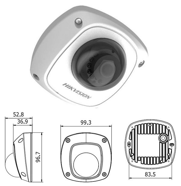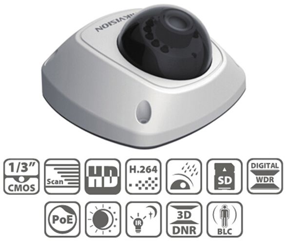 Корпус HIKVISION DS-2CD2532F-IS 2.8mm, соответствующий высокому стандарту защиты от попадания внутрь влаги и пыли IP66, выполнен в форме миниатюрного купола из материалов с повышенным коэффициентом прочности, что позволяет отнести IP-камеру к разряду вандалозащищенных устройств. Набор интерфейсов модели представлен: стандартным сетевым разъемом RJ-45, тревожными входами/выходами (опция, модификация -S), аудио гнездом (выход) и разъемом для подключения 12-вольтового источника питания. Также камера оборудована слотом для установки карт памяти, благодаря которому может производиться локальная запись на microSD-карту объемом до 64 Гбайт, что, во-первых, превращает прибор в автономный видеорегистратор, а во-вторых, вдвое увеличивает надежность сохранности отснятых с ее помощью видеоматериалов. Порт RJ-45 поддерживает функцию питания по сети Ethernet (PoE), устраняющую необходимость в использовании обычного БП, что облегчает процесс инсталляции и сокращает затраты на закупку и прокладку силовых кабелей к месту установки устройства. Через тревожные входы-выходы к HIKVISION DS-2CD2532F-IS 2.8mm могут быть подсоединены дополнительные датчики охраны периметра и пожарные детекторы для мониторинга возникновения нештатных ситуаций в рамках комплексной системы безопасности. Камера комплектуется 3-мегапиксельным объективом с фиксированным фокусным расстоянием 2.8 мм при F2.0 (опционально может быть 4, 6 и 8 мм) и 3-осевым креплением. Опционально доступны модификации устройства, снабженные беспроводным модулем (Wi-Fi).