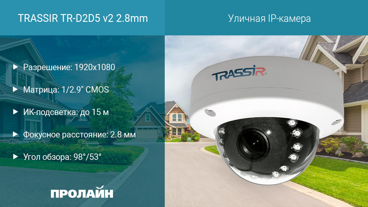 IP-камера TRASSIR TR-D2D5 v2 2.8mm предназначена для внутренней эксплуатации. Подходит для ночного видеонаблюдения — оснащена ИК-подсветкой дальностью действия 15 м. TR-D2D5 основана на высокопроизводительном процессоре и сверхчувствительной (0.005 лк) CMOS-матрице, благодаря чему улучшены цветопередача и детализация, снижено энергопотребление, камера дольше работает в цветном режиме.