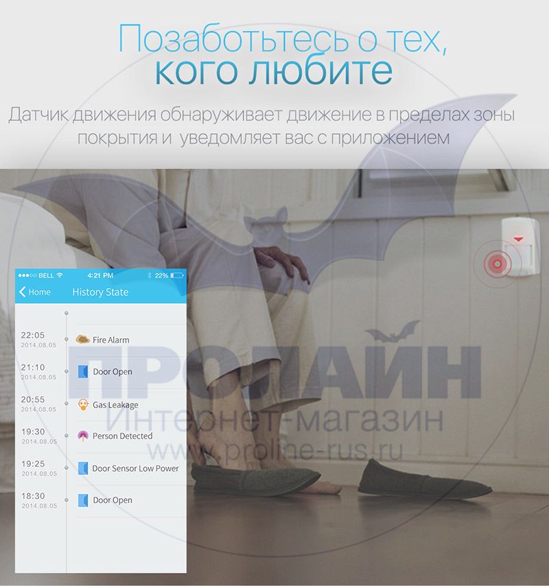 - Работает дистанционно, даже находясь вне дома можно проконтролировать и узнать состояние безопасности в доме.