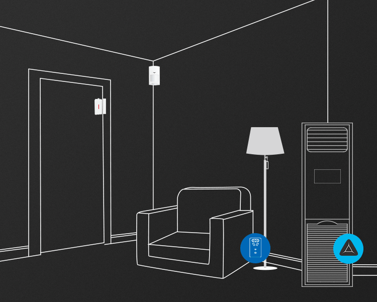 - Датчик движения срабатывает от любого движения в радиусе его действия.