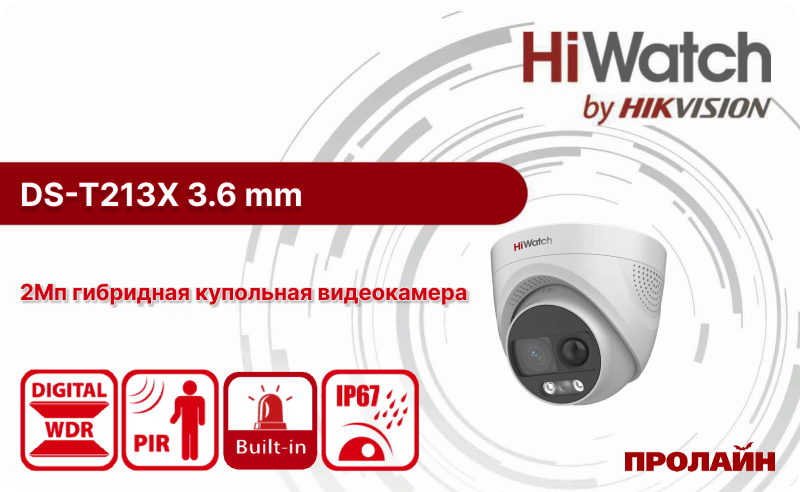 Купольная гибридная видеокамера HiWatch DS-T213X 3.6mm