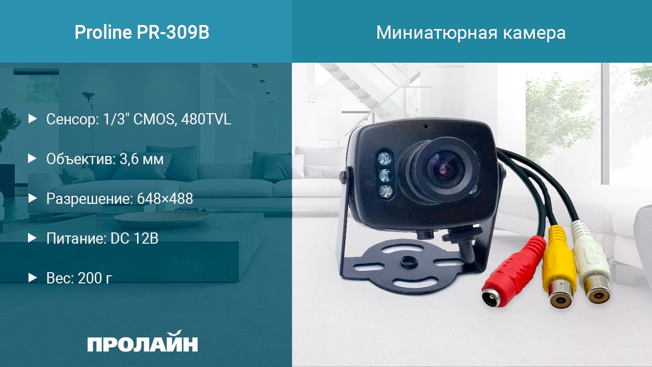 Миниатюрная камера Proline PR-309B отлично подходит для установки в местах, где нет возможности использовать модели более крупного размера, однако есть необходимость получать четкое изображение без "артефактов" при любых условиях освещенности. Разрешение камеры позволит запечатлеть все детали изображения, а благодаря 6 ИК-светодиодам c 940nM? она способна снимать даже в сумерках или при полной темноте. Устройство находит широкое применение в области планирования систем контроля и видеосъемки на больших объектах со множеством комнат или кабинетов.