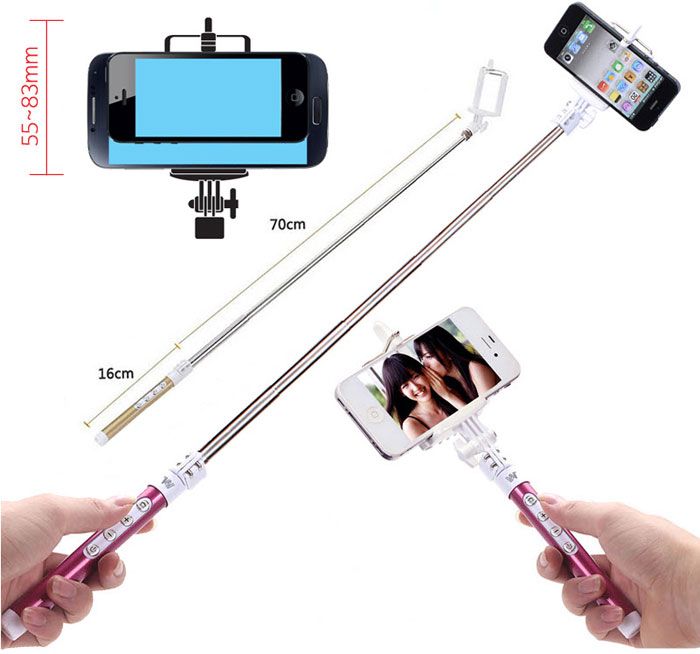 Теперь Вы можете фотографировать себя не только на расстоянии вытянутой руки, но и и на расстоянии действия Bluetooth кнопки, которая встроена в съемную рукоять монопода, установив ваш телефон на напольный или настольный штатив, хоть посреди поля!