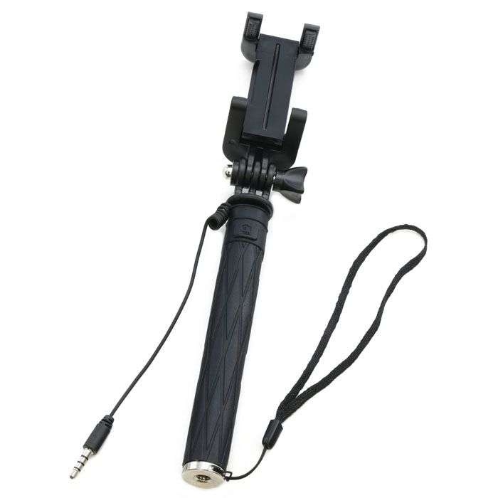Особенностью и удобством этой модели монопода является компактный размер (всего 155 мм) и встроенная в рукоятку кнопка дистанционного спуска. Связь монопода со смартфоном осуществляется посредством кабеля с разъемом Jack (3,5 мм). Провод подключается в гнездо для наушников.
