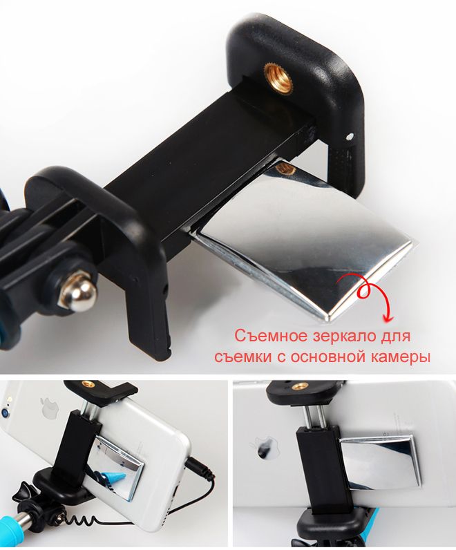Легкая и удобная система крепления позволит Вам получить желаемый кадр практически в любых условиях. Все что от Вас потребуется, это отрегулировать длину штатива, угол наклона закрепленного гаджета и улыбнуться в камеру. А закрепить в специальном держателе монопода можно практически любое мобильное устройство