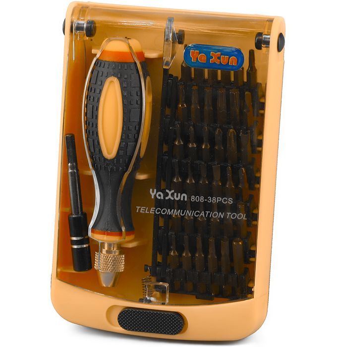 Ya Xun YX-808-38A представляет собой профессиональный набор отвёрток для ремонта мобильных и электронных устройств, так же прекрасно подойдет для ремонта часов, очков, мелкой бытовой техники и портативной электроники, в комплект входит все необходимые насадки (биты используемые в современной технике)
