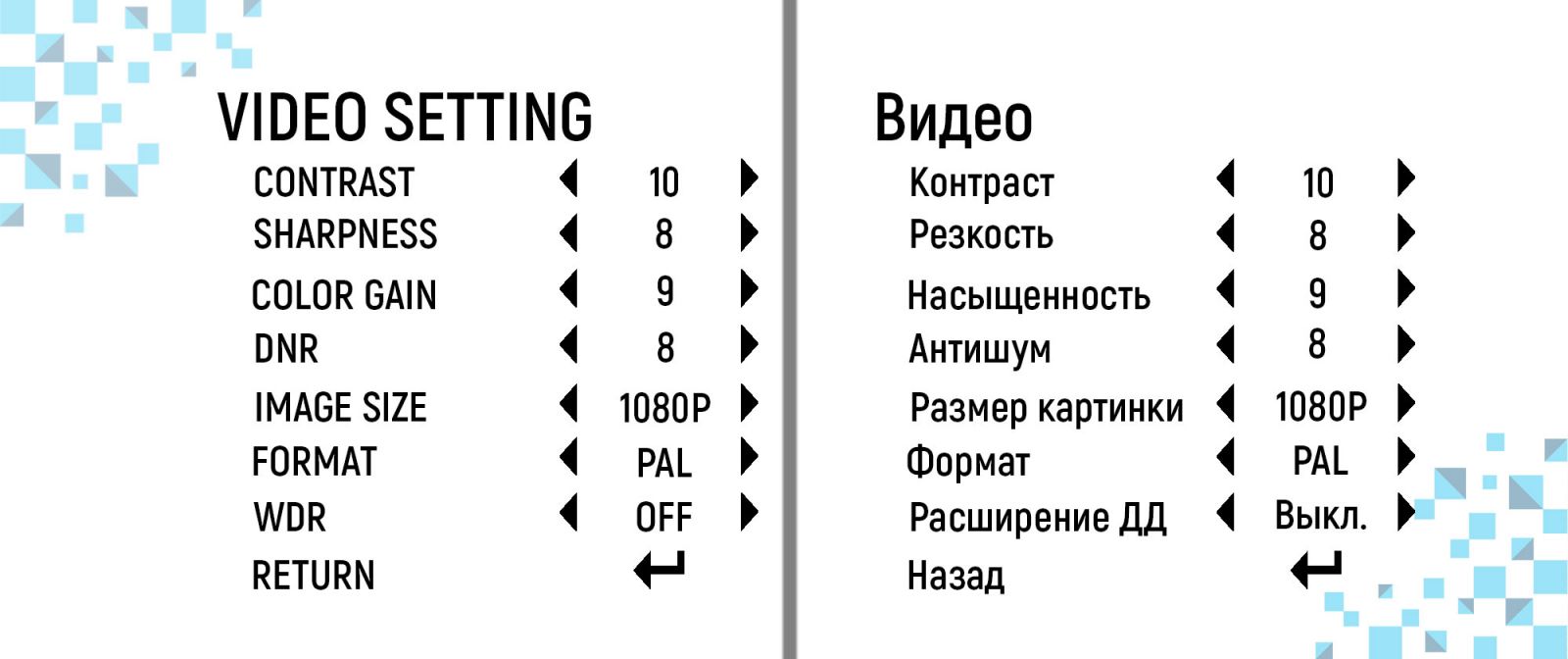 Пример OSD-меню камеры