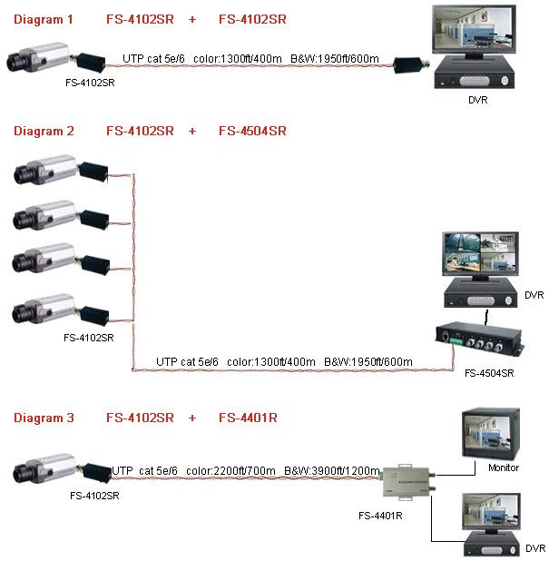 Модель Folksafe FS-4102SR KIT является пассивным (без усилителя) устройством которое позволяет передавать в режиме реального времени, видео сигнал по кабелю витая пара (UTP CAT5e/6). Поддерживает любой композитный видео сигнал. Для передачи сигнала необходимо использовать передатчик (transceiver) в паре с приемником (receiver). FS-4102SR обладает фукцией взаимозамены - может исполнять функцию приемника.