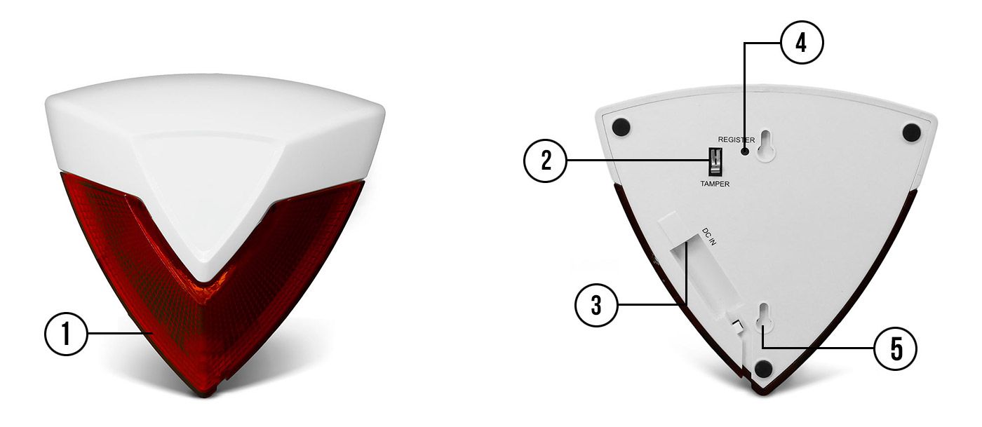 1. Индикатор питания (мигает всякий раз, когда срабатывает сигнал тревоги)