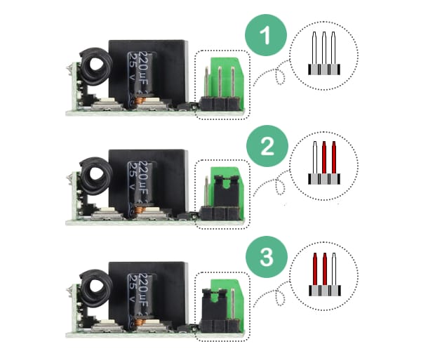 1) Подключите контроллер к источнику питания. Следует предварительно снять перемычку на контроллере.