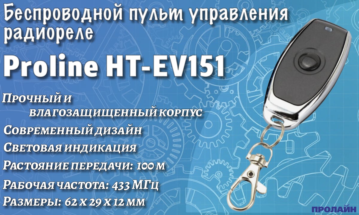 Беспроводной пульт управления радиореле HT-EV151. Пульт выполнен во влагозащищенном корпусе и оснащен одной кнопкой. Брелок позволяет управлять радиореле работающем на частоте 433 мегагерц, такими как: AK-RK01SX-220, AK-RK01SE-220, AK-LD024, AK-LD012. Дальность работы изделия до 100 метров в зависимости от фактических условий эксплуатации.