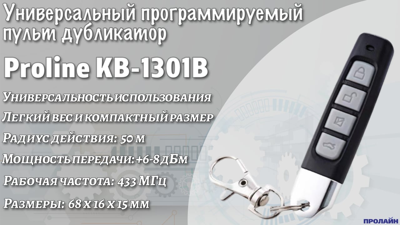 Универсальный программируемый пульт дубликатор Proline KB-1301B способен копировать сигнал с других брелоков на частоте 433МГц и объединить в себе сразу несколько. Устройство оснащено четырьмя кнопками. На каждую кнопку можно скопировать сигнал с других брелоков. Таким образом вместо четырех различных брелоков у вас будет всего один. Это очень удобно если у вас один пульт от домашней сигнализации, второй от ворот гаража, третий от шлагбаума на парковке и так далее. Универсальность прибора обеспечивается возможностью программировать каждую кнопку по отдельности. Дальность работы изделия до 50 метров в зависимости от фактических условий эксплуатации.
