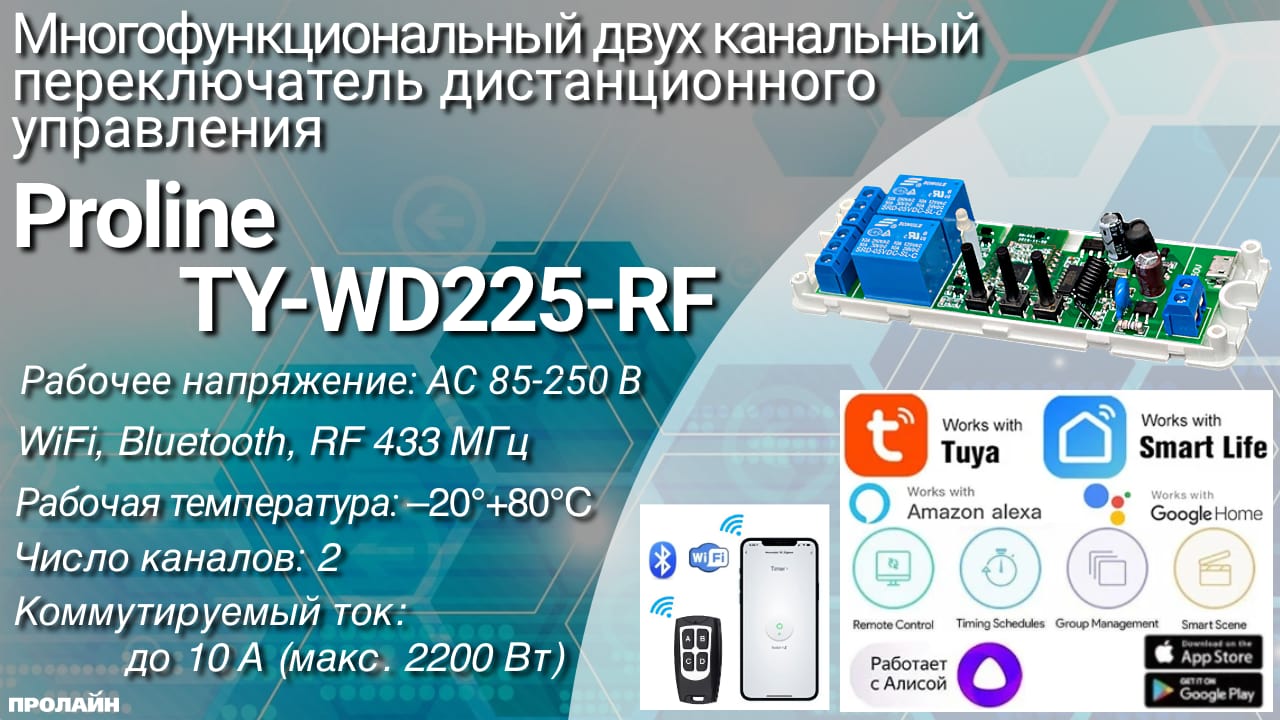 WiFi, Bluetooth, RF реле 2Ch TY-WD225-RF