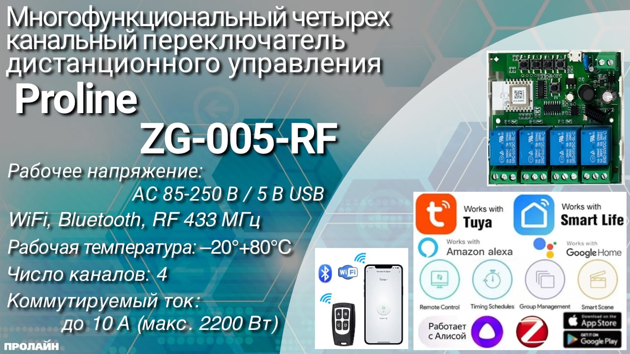 WiFi, Bluetooth, RF реле 4Ch ZG-005-RF