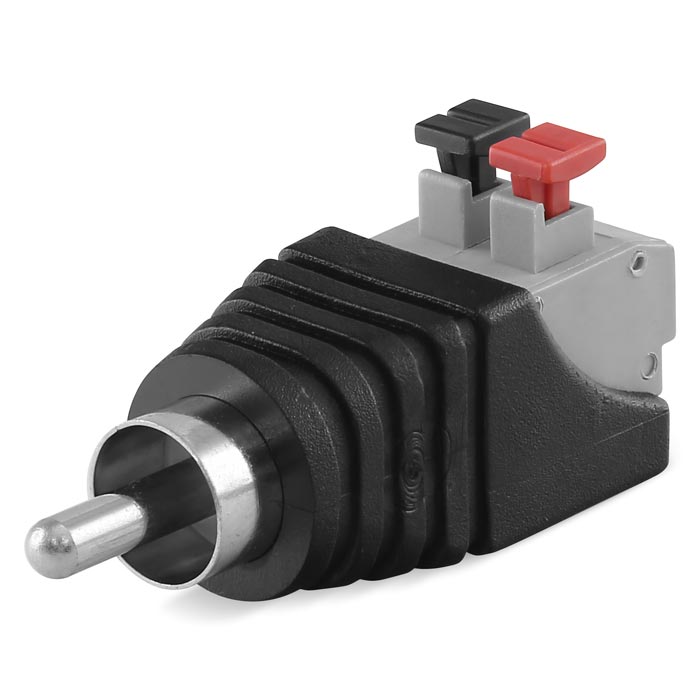 Разъем штекер RCA с быстрозажимной клеммной колодкой предназначен для оперативного соединения кабелей с видео и аудиоаппаратурой. Разъем RCA (используется более 60 лет, англ. Radio Corporation of America, в просторечии «тюльпан», AV-разъём) - стандартизированный разъем, передающий монофонический аудиосигнал или видеосигнал через кабель на видео и аудиотехнику: профессиональные звуковые карты (для линейных входов и выходов), DVD-плееры, видеомагнитофоны, VHS-видеокамеры и другую аппаратуру, имеющую соответствующий разъем. Двухконтактное гнездо монтируется на кабель без использования какого-либо инструмента с помощью подпружиненных зажимов и соединяется с штекером RCA. Этот способ крепления значительно проще и быстрее, чем пайка, но его надежность и качество соединения остаются на неизменно высоком уровне. Корпус разъема изготовлен из ударопрочного пластика, а контакты никелированы. Диапазон рабочих температур от -30°C до +80°C. Штекер может использоваться для соединения провода в случае обрыва или замены вышедших из строя разъемов шнура. Простой монтаж и надёжное соединение, обеспечат защиту от помех и внешних воздействий.