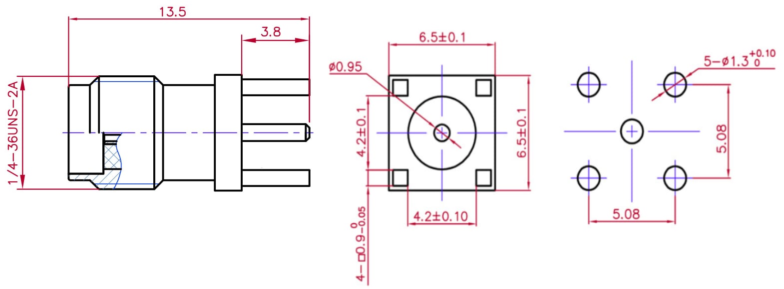 - Тип разъёма — SMA-F, 1/4-36UNS-2A