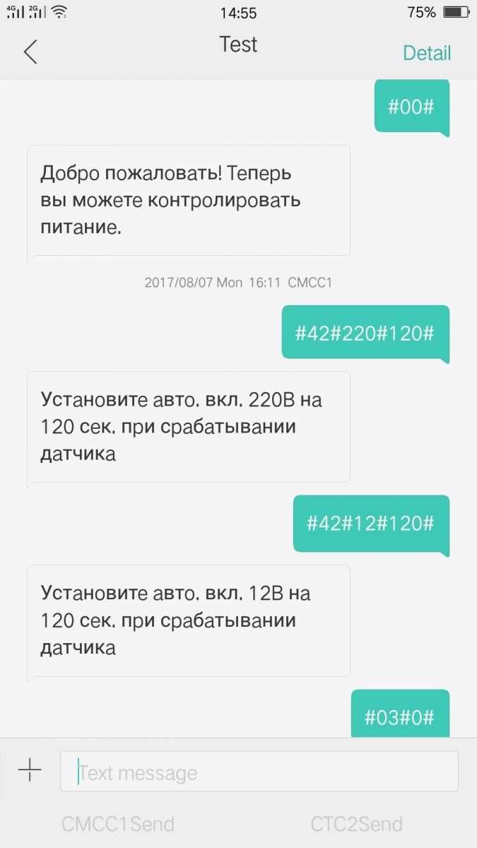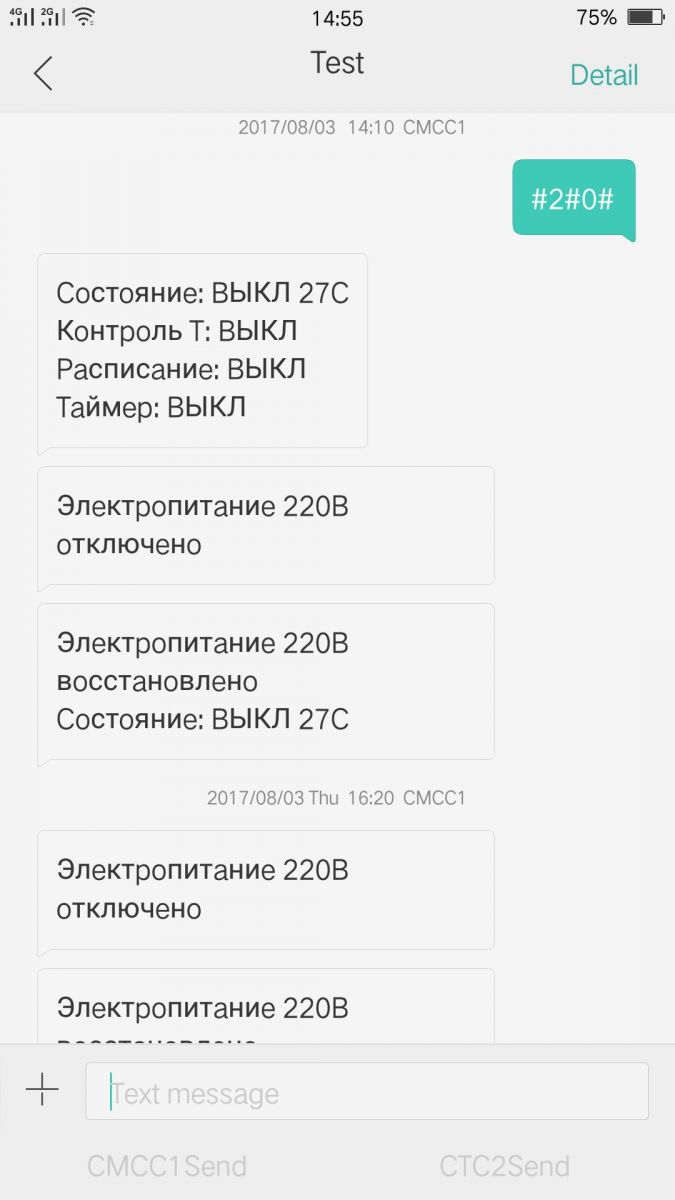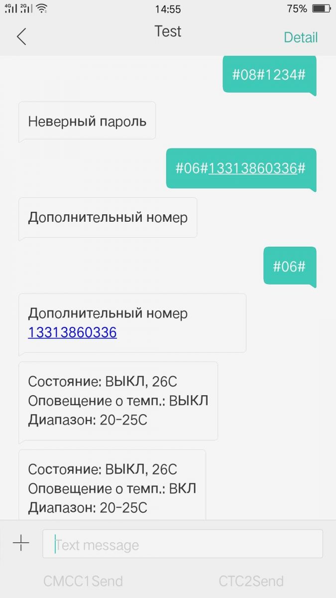 Для удобства управления и визуализации процесса все СМС-команды формируются автоматически приложением, установленным на вашем смартфоне. В корпус устройства встроена вилка под розетку на 220 вольт для питания от штатной сети. Выходное напряжение составляет 220 В 16 А. Передача данных производится исключительно в сотовых сетях 2G. Оповещение от устройства поступают в форме СМС. Текст сообщений полностью на русском языке. Диапазон температур встроенного датчика от -10 до + 50 градусов. При потере электропитания аппарат способен поддерживать работоспособность непродолжительное время в течение которого отправляется тревожное сообщение на номер администратора. Во избежание блокировки SIM-карты, установленной в извещателе при неактивности в течение 2 месяцев устройство, высылает тестовое СМС.