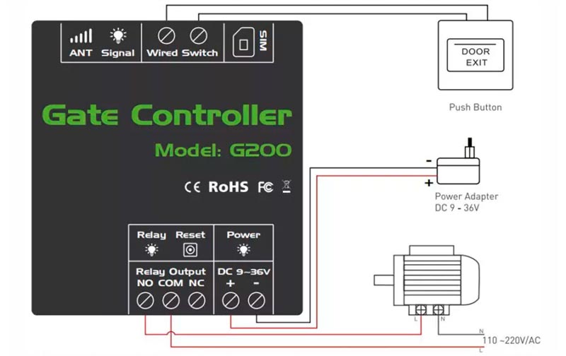 В память изделия прописываются номера абонентов, имеющих доступ на объект. Информация хранится на карте памяти G202. Управление происходит следующим образом: производится звонок на SIM-карту, установленную в GSM-модуль. После дозвона устройство самостоятельно сбрасывает вызов и отправляет команду на открытие. Все непрописанные в базу номера игнорируются. Настройки производятся по средством СМС-команд, которые могут исходить с любых номеров и должны вводится заглавными буквами латинского алфавита. Первым действием необходимо сменить пароль по умолчанию (1234) на новый. Реле прибора состоит из трех контактов (общий, нормально разомкнутый и нормально замкнутый) и способен коммутировать нагрузку до 3 ампер с напряжением 220 вольт. Питание устройства происходит от 9 до 24 вольт DC.
