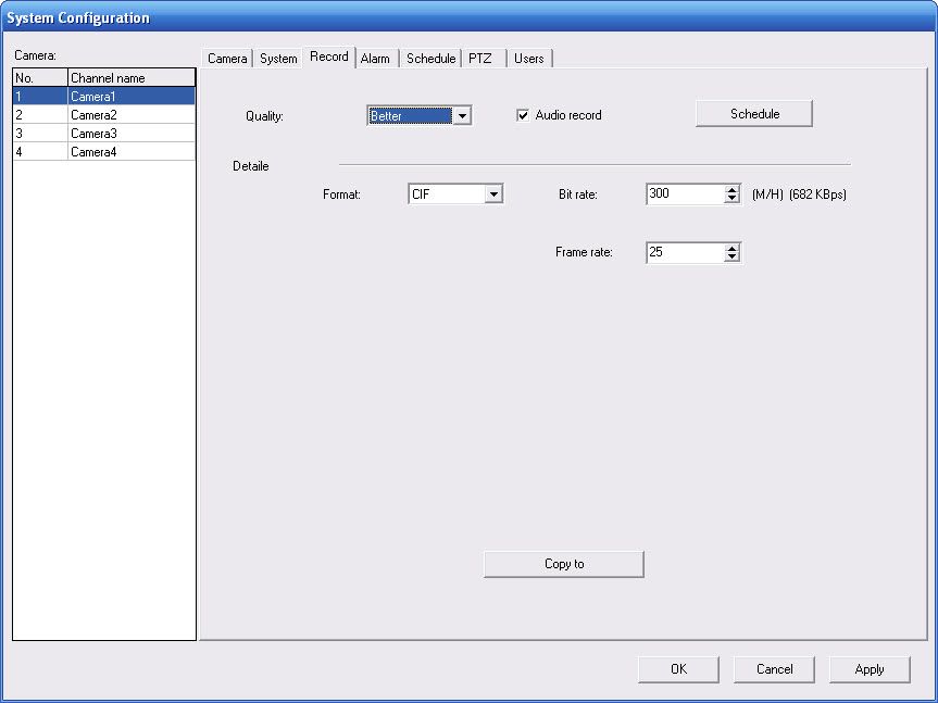 • Запись при подключении 1 канала происходит с разрешением D1 (704х576) или CIF (352x288) и скоростью 25 к/с.
