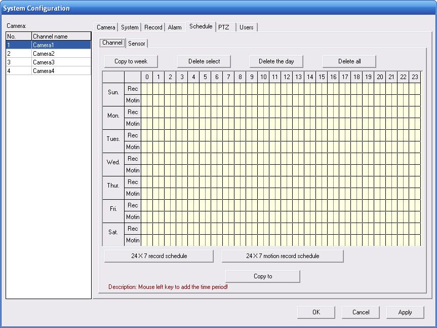 Пользователи могут выбрать любой срок для того, чтобы сделать запись или настроить интервалы записи, по датчику тревоги, по движению, вручную.
