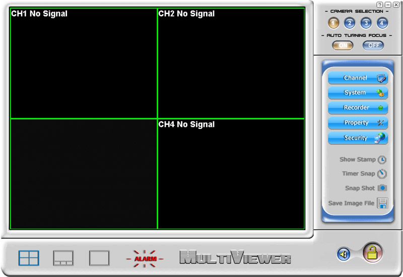 К USB-видеорегистратору подключаются четыре канала видео, изображение которых выводится на экран с помощью программного обеспечения. Просмотр видео с камер может осуществляться в режиме квадратора (четыре изображения сразу), в формате полноэкранного наблюдения, а также автоматического последовательного переключения каждого канала. Причем в режиме квадратора частота кадров в секунду становится меньше и видео с каждого канала выводится с пропуском кадров.