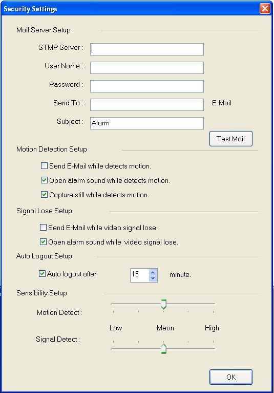 С помощью программного обеспечения можно получать сообщения на электронную почту при возникновении тревожного события. Событием может быть как срабатывание детектора движения с настройкой чувствительности, так и потеря сигнала с подключенных камер. При возникновении любого тревожного события включиться звуковой сигнал и происходит отправка уведомления на электронную почту.