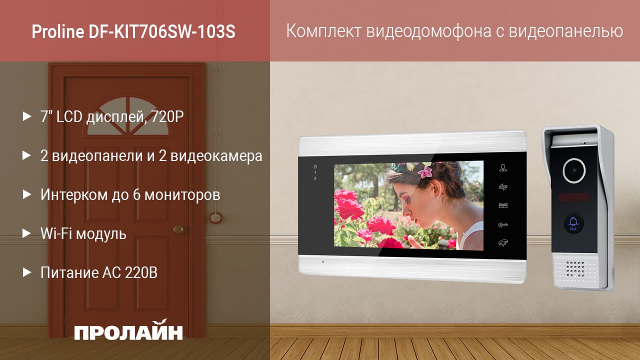 Комплект видеодомофона с видеопанелью Proline DF-KIT706SW-103S