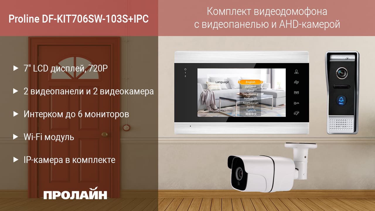 Комплект видеодомофона с видеопанелью и AHD-камерой Proline DF-KIT706SW-103S+IPC