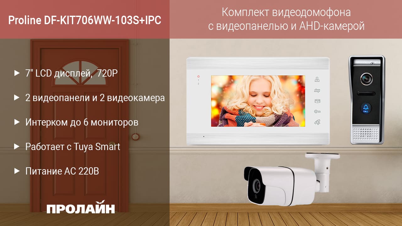 Комплект видеодомофона с видеопанелью и AHD камерой Proline DF-KIT706WW-103S+IPC