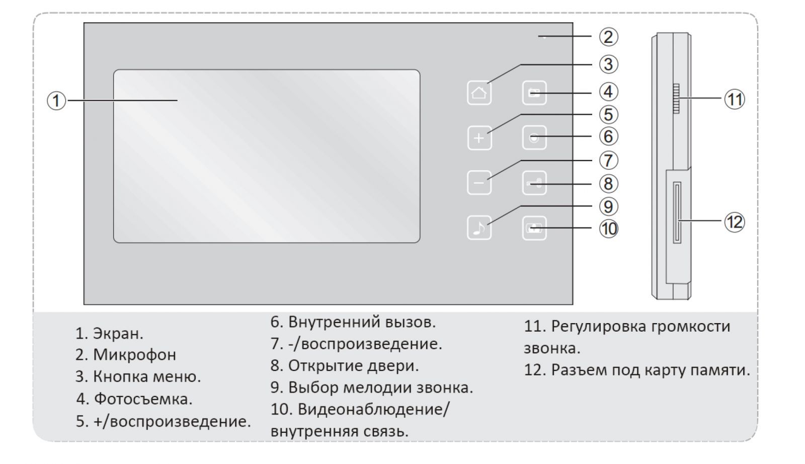 - Фотосъемка с вызывной панели (записывает фото на SD карту до 100 фото)