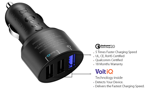 Кроме Quick Charge 2.0 в данном зарядном устройстве реализована технология VoltiQ позволяющая определять необходимую мощность и силу тока для вашего устройства.