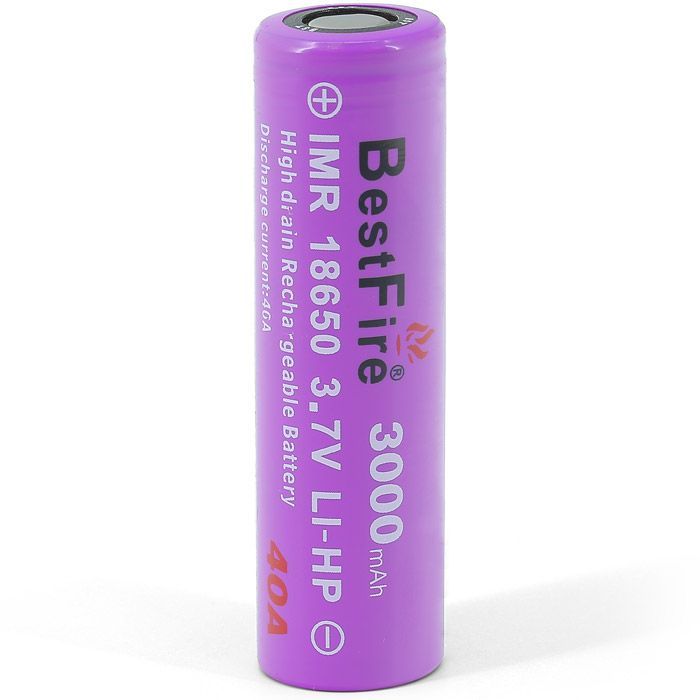 Аккумуляторная высокотоковая батарея Best Fire IMR18650 3000mAh 40A-20C обладает реальной емкостью 3000 мАч. Благодаря большой силе отдачи тока, аккумуляторы Best Fire можно использовать в «электронных сигаретах».