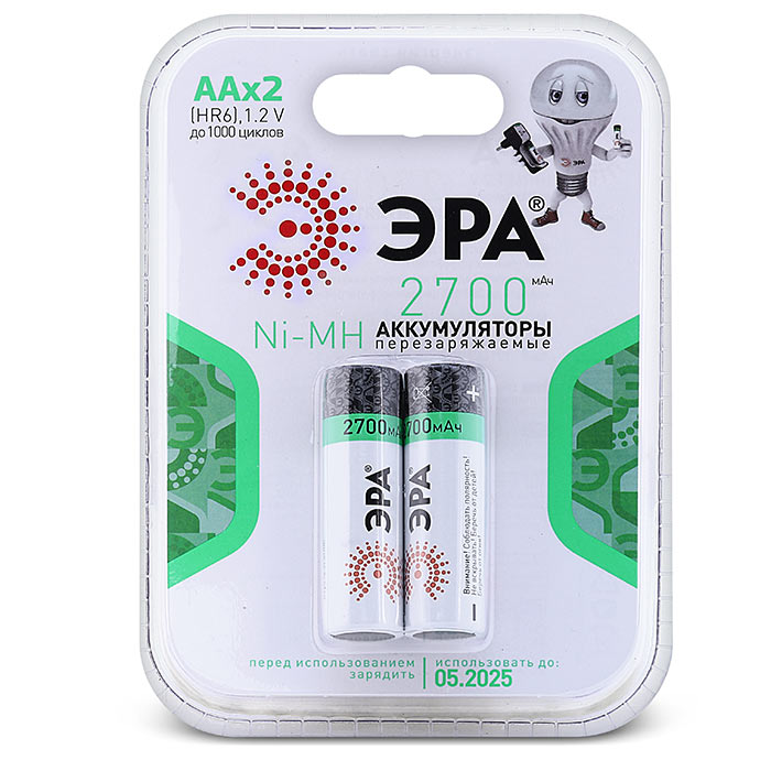 Технические характеристики аккумуляторов Rechargeable ЭРА HR6-2BL AA 2700mAh: