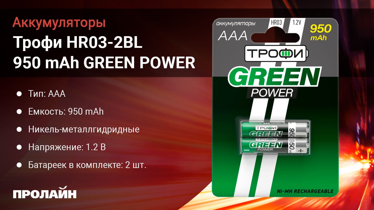Аккумуляторная батарея Трофи HR03-2BL 950 mAh GREEN POWER