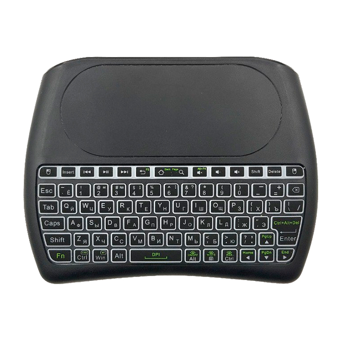 Развитие беспроводных технологий упрощает наше взаимодействие с окружением. Универсальный пульт-клавиатура VONTAR D8 Pro - это устройство для взаимодействия со множеством приборов. Состав комплекта включает в себя USB-передатчик и аккумулятор. Часто подобные устройства имеют сокращённый набор клавиш, однако тут полноценная клавиатура с русской и английской раскладками. С большим тачпад комфортно работать, к нему легко привыкнуть и использовать жесты. Подсветка разнообразит внешний вид, а также позволит использовать клавиатуру в темноте.