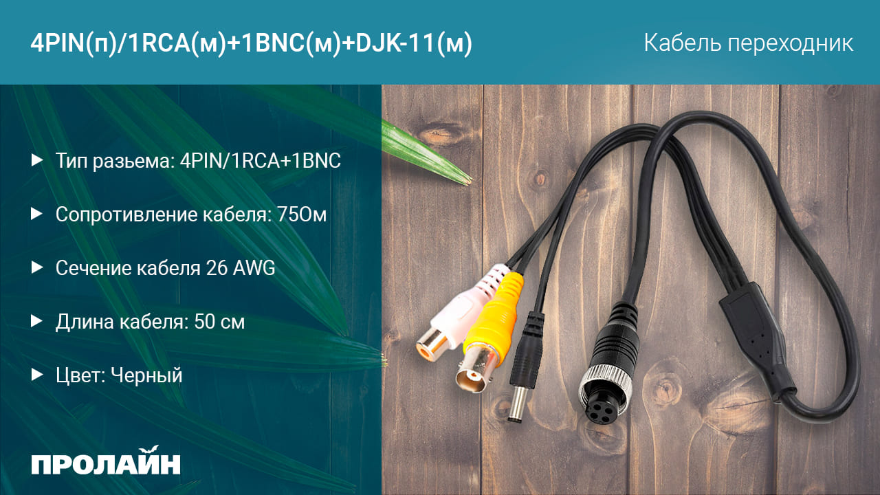 Кабель переходник 4PIN(п)/1RCA(м)+1BNC(м)+DJK-11(п)