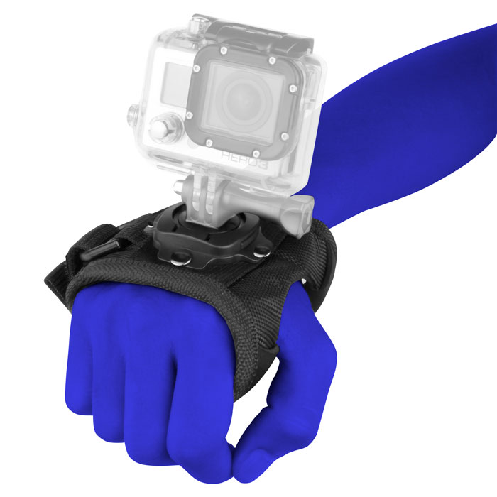 Зафиксируйте GP-WBM-360 на кисти вашей руки с помощью ремня и липучек, установите камеру на основание с помощью фиксирующего винта и начинайте съемку!