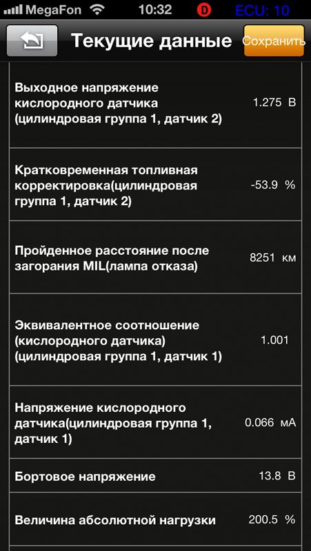 Записывает такие данные, как частота вращения двигателя, скорость зажигания, расход топлива, температура охлаждающей жидкости, даже когда вы ведёте машину, iOBD показывает эти данные в таблице или в виде графика.