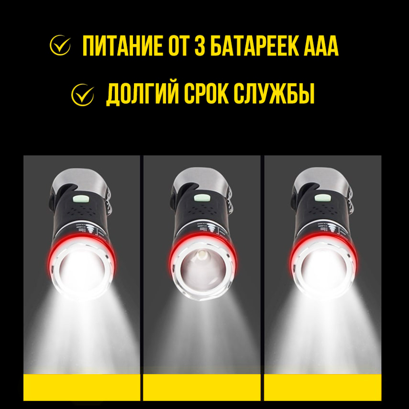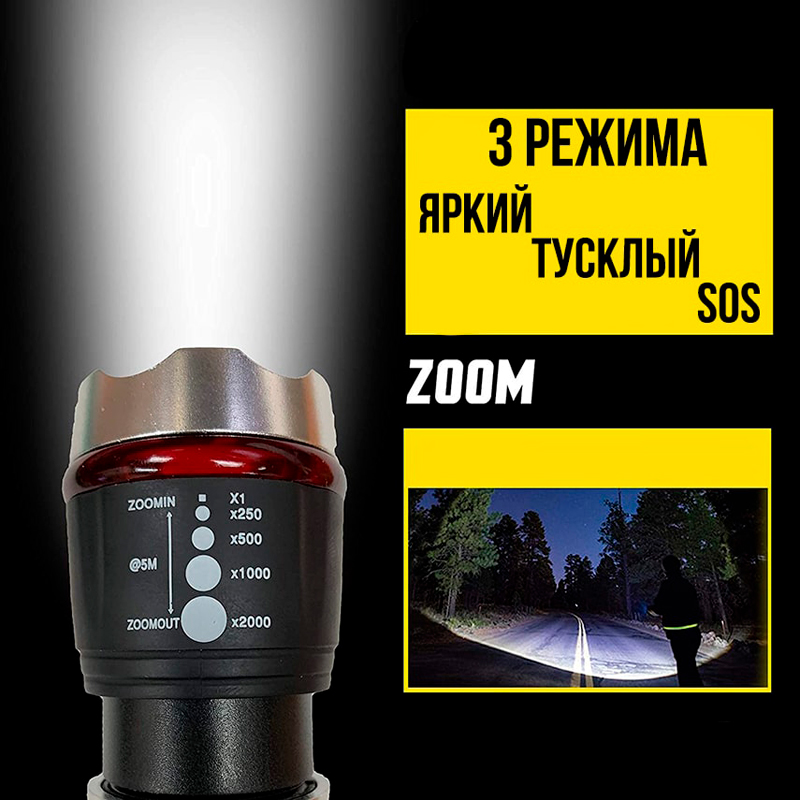 2 режима яркости, стробоскоп, ZOOM, S.O.S.