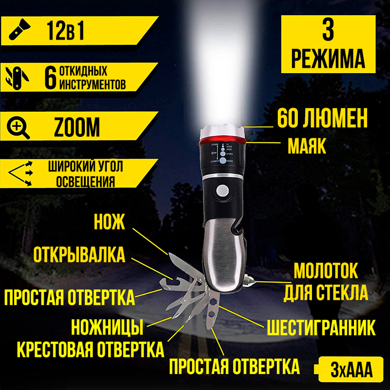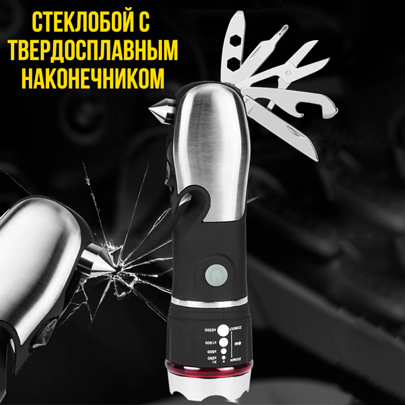 Фонарь тактический светодиодный многофункциональный, мультитул с зумом Quell Emergency Multi Tool