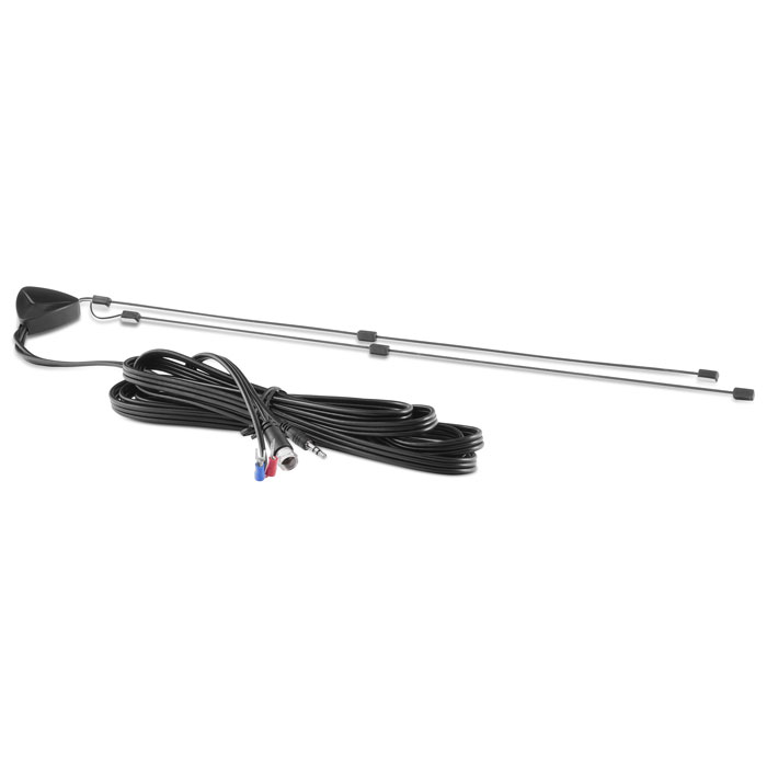 Длина антенны составляет 42 см монтаж производится внутри салона. Для подключения, телевизора, приставки, магнитолы и прочего радиоприемного оборудование используются разъемы подключения F-разъем (штекер) или miniJack 3.5мм (штекер). Если в телевизоре, приставке, магнитоле нет встроенного усилителя сигнала, то необходимо подключить питание DC 5В для усиления сигнала по двум отдельным проводам.